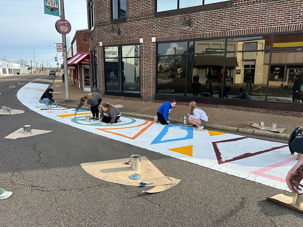 One of these communities was Amory, and the project they chose to implement as part of this undertaking was street art along the town's main street in what is known locally as Vinegar Bend. The STC enlisted its CREATE Common Ground class to assist in the planning and execution of this two-day event, which volunteers of all ages came out to take part in. The result was a vibrant addition to Amory's downtown and a safer and more invigorating environment for pedestrians visiting the downtown businesses.